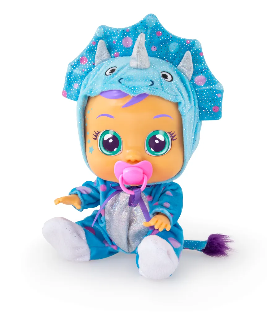 Lernen Sie Cry Babies Tina kennen. Sie ist ein entzückender Dinosaurier, der in einer Fantasiewelt lebt! Sie ist super süß, aber… Wenn du ihr ihren Dummy wegnullst, weint sie echte Tränen. Sie wird nicht aufhören zu weinen, bis du ihren Dummy zurück gibst! Set beinhaltet: Ein Cry Baby und ein Dummy Cry Babies weinen echtes Wasser!Jedes Cry Baby wird mit einem süßen Onesie geliefert! Sie weinen, wenn du ihren Dummy wendest!Sie sind das süßeste Baby, wenn sie ihren Dummy haben
