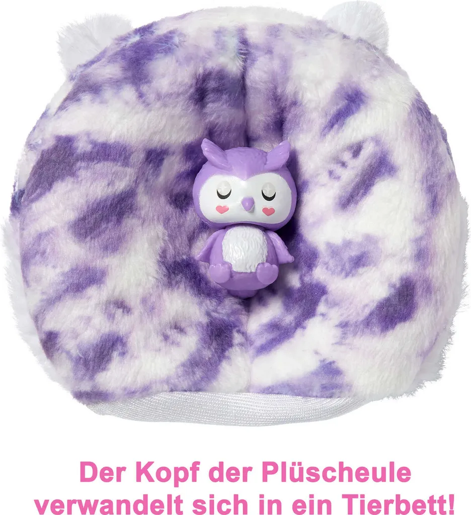 - Kinder können die Barbie-Puppe ankleiden und stylen. Durch Umdrehen des Kostüms entsteht eine wunderbar weiches Fleece-Jackenkleid mit einem Sternenmuster darauf. Der Kopf des Kostüms lässt sich zu einem Körbchen für die Eule umwandeln.