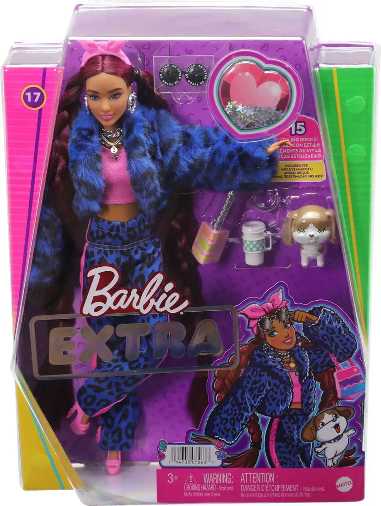Die Barbie Extra Puppen tragen ausgefallene Outfits in leuchtenden Farben und setzen ein modisches Statement! Jede Barbie-Puppe hat einen ganz einzigartigen, verspielten und extravaganten Stil. Auch ihre tierischen Freunde alle verschieden und alle bezaubernd haben ihre ganz eigene Persönlichkeit! Die Barbie Extra Puppen ermöglichen Kindern mehr über Selbstentfaltung zu lernen und gleichzeitig können sie spannende Fashion- und Styling-Spielerlebnisse erleben. Diese Puppen sorgen mit ihrem Modestil, der auf Glitzer, Gummibärchen, Emojis und ausgefallene Frisuren setzt, überall für die EXTRA Portion Stimmung. Alle Artikel separat erhältlich. Die Puppen können nicht von allein stehen. Abweichungen in Farbe und Gestaltung vorbehalten.