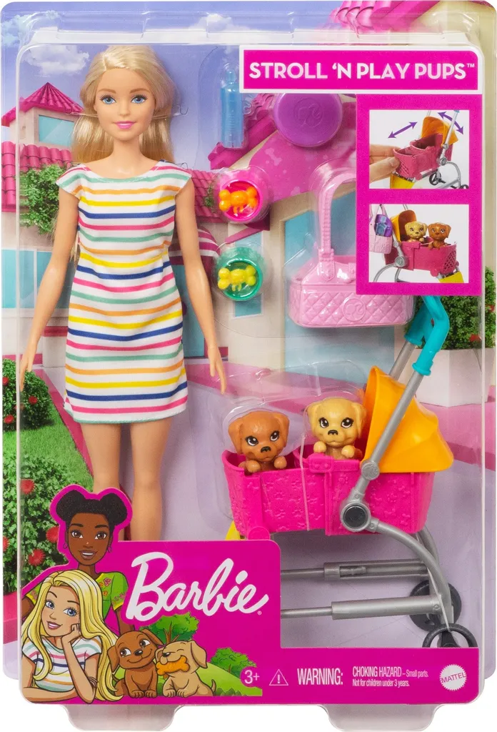 Barbie teenager-Puppe Stroll ’n Play Pups Mädchen 30 cm 10-teilig