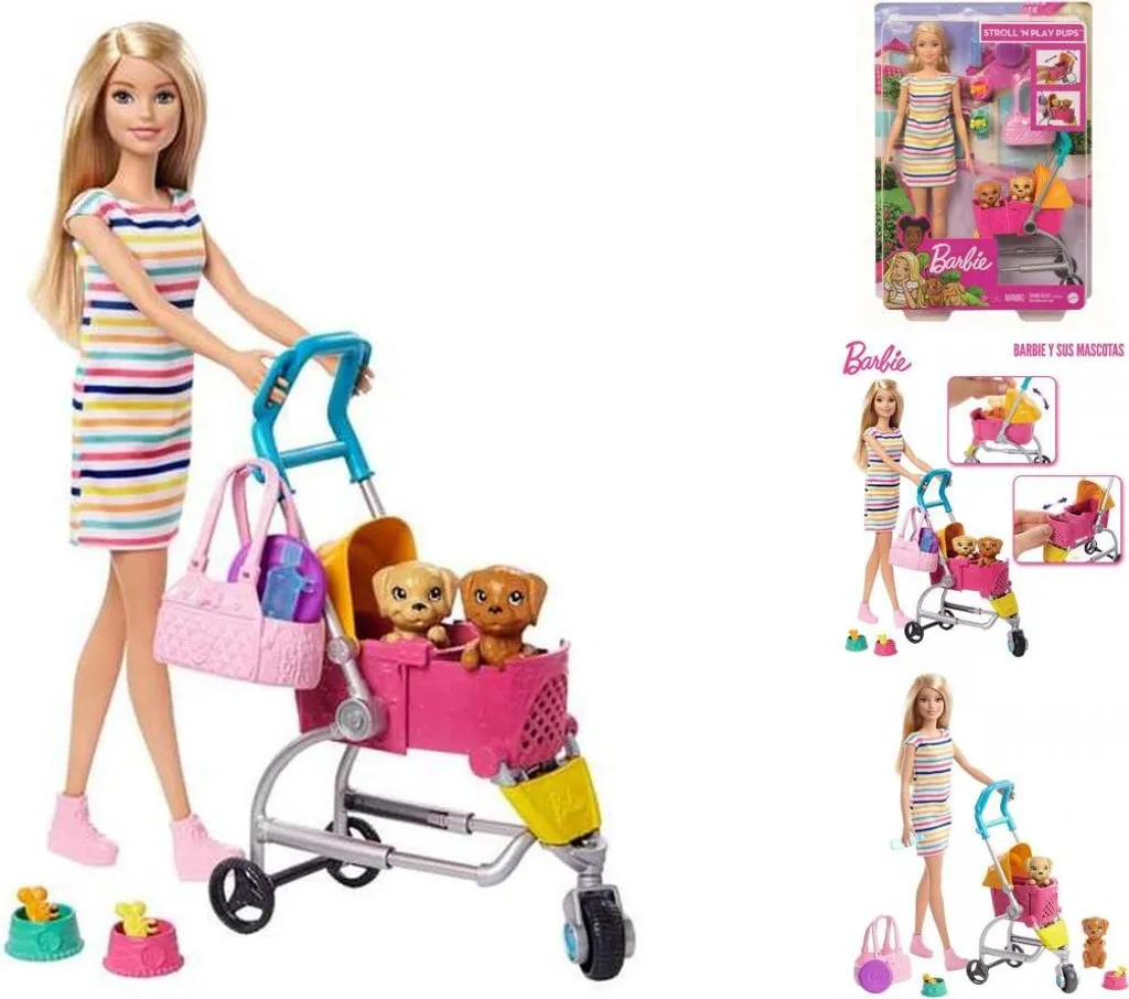 - Dieses Barbie Hundebuggy Spielset mit einer Barbie-Puppe, zwei Hündchen, einem Buggy für die Hündchen und Zubehörteilen bietet tollen Spielspaß für Tierliebhaber!