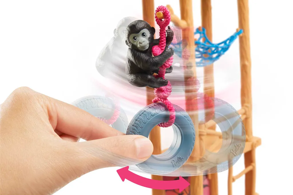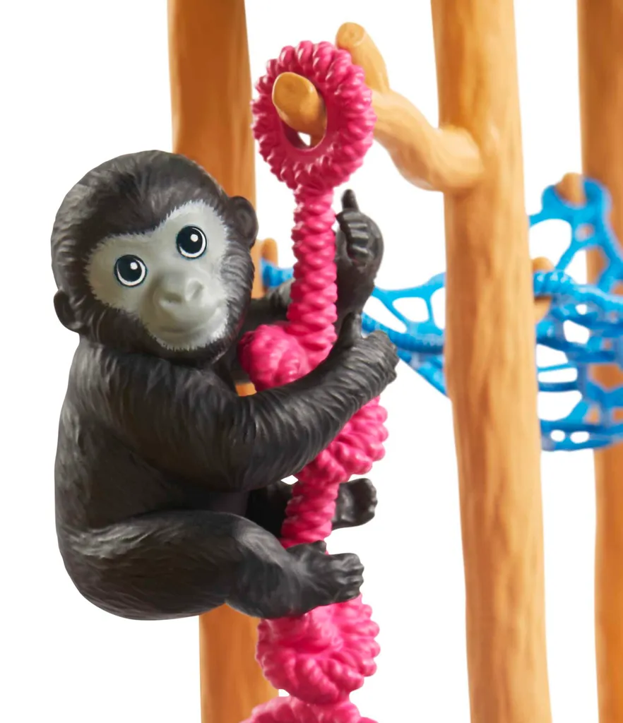 Mit dem Ken Wildtierarzt-Spielset tauchen Kinder in die Welt der Tierpflege ein! Wer es liebt, sich um wilde Tiere zu kümmern, für den ist Wildtierarzt der richtige Beruf! Dieses Spielset enthält Wildtierarzt-Zubehör sowie eine Ken Wildtierarzt-Puppe und niedlichen Patienten: ein Gepardenbaby und ein Äffchen! Wildtierärzte sind freundlich und klug und kümmern sich um wilde Tiere, damit sie glücklich und gesund bleiben. Dieses Spielset enthält eine Pflegestation mit einem Reifen, auf dem das Äffchen schaukeln kann, eine Mini-Hängematte, einen Tisch und einen abgegrenzten Bereich. Die Ken Wildtierarzt-Puppe trägt ein hellgrünes Hemd und khakifarbene Shorts und hat ein Stethoskop, eine Fütterungsflasche und weiteres Pflegezubehör dabei. Kinder werden es lieben, sich immer wieder neue Geschichten auszudenken! Die Puppe kann nicht von allein stehen. Abweichungen in Farbe und Gestaltung vorbehalten. Ab 3 Jahren.