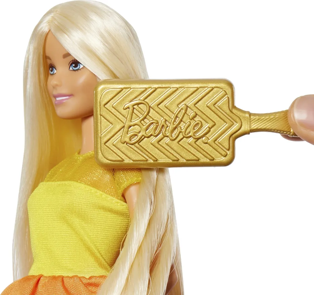 – Die Haare der Barbie-Puppe bürsten, damit sie wieder glatt werden, und einen neuen Look kreieren!