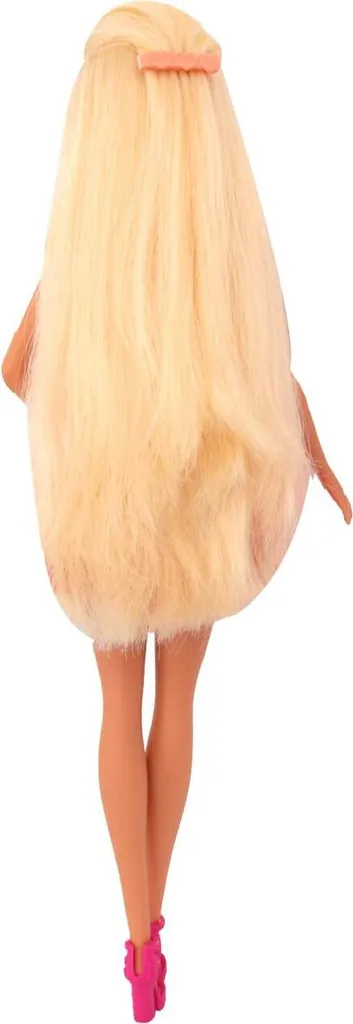 Mit dem Barbie Locken-Style Puppe-Spielset lassen sich wunderschöne Locken für die Barbie-Puppe zaubern. Mit dem hitzefreien Styling-Zubehör ist es ganz leicht! Die langen blonden Haare der Barbie-Puppe können auf zwei Arten gelockt werden – entweder mit dem Lockenstab oder den Lockenwicklern. Beide kommen ganz ohne Hitze aus. Einfach die Haare um eines der Zubehöre wickeln, halten und lösen. So können dichte Locken, lockere Wellen oder glatte Haare gezaubert werden. Die zusätzlichen Haar-Accessoires wie Haargummis, Spangen und ein Haarband, inspirieren zu noch mehr kreativen Frisuren. Die Haare der Barbie-Puppe bürsten, um einen neuen Look auszuprobieren. Kinder können jeden Tag neue Frisuren ausprobieren und damit ihren eigenen Stil zum Ausdruck bringen. Mit ihrem bunten Kleid mit der durchsichtigen Schulterpartie, dem Faltenrock und den hübschen Schuhen sind den Geschichten, die sich Kinder zu ihrer Barbie-Puppe ausdenken können, keine Grenzen gesetzt. Kleine Haarstylistinnen werden es lieben, jeden Tag neue Looks zu kreieren, denn wenn Mädchen mit Barbie spielen, können sie alles werden, was sie sich vorstellen! Enthält eine Barbie Locken-Style Puppe mit Mode, Accessoires und einem Lockenstab – Wunderschöne Lockenfrisuren für die Barbie Locken-Style Puppe kreieren!