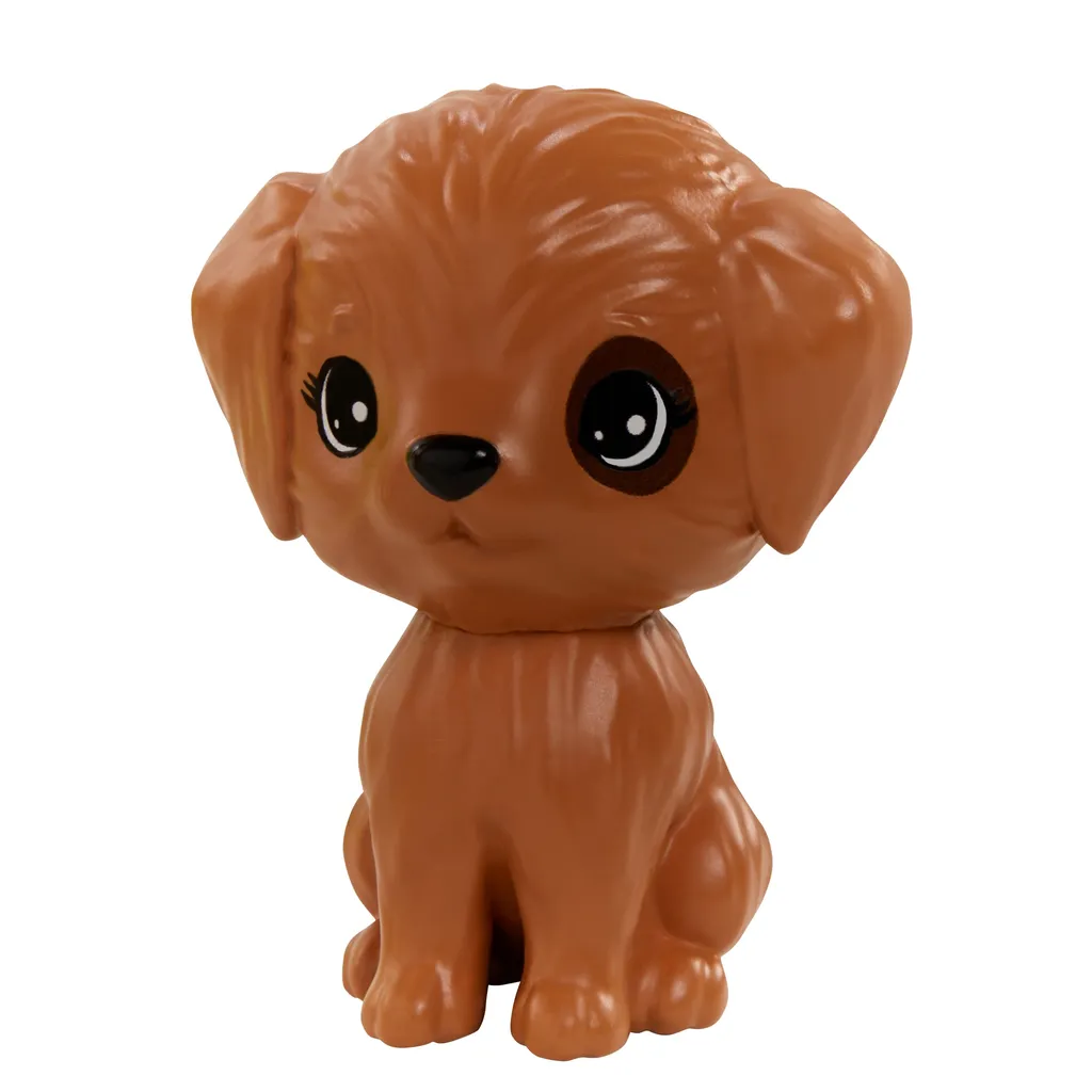Das Spielset enthält ein Hündchen, das zu Geschichten rund um Freundschaft anregt, sowie einen Badeanzug mit auffälligem Muster und eine Kamera mit Tragegurt.