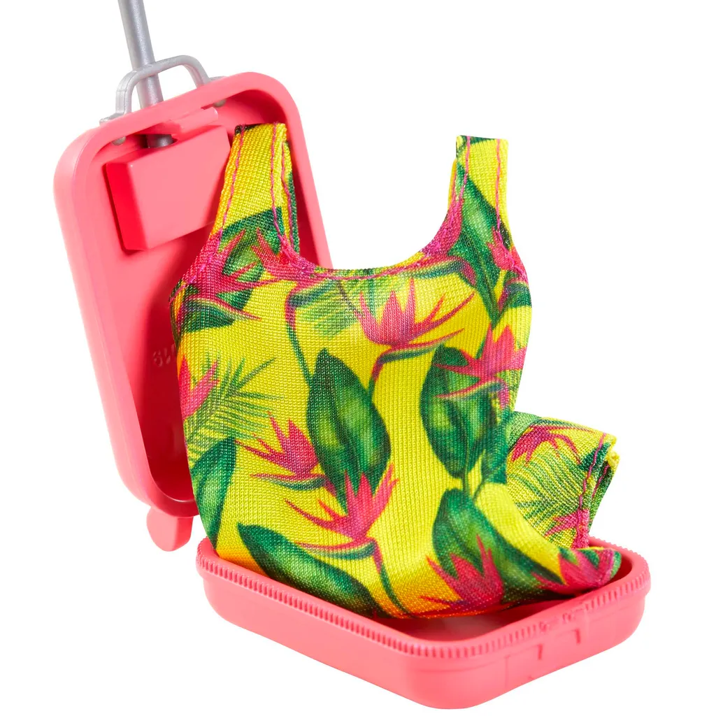 Die von Barbie und Chelsea „Dschungelabenteuer“ inspirierten Puppen und Spielsets beflügeln die Fantasie von Kindern. Mit ihnen lassen sich tolle Abenteuer mit Tierfreunden erleben. Die Barbie-Puppe ist in ihrem modischen Kleid mit tropischem Muster bereit, die Welt zu bereisen. Kinder können ihr helfen, den Koffer zu ihrem Reiseziel zu rollen und in einen Badeanzug zu schlüpfen, und dann heißt es, ab ins Wasser! Das Hündchen inspiriert zu süßen Geschichten rund um Freundschaft, und eine Ananas-Tasche rundet den tropischen Look gekonnt ab. Die Puppe kann nicht von allein stehen. Abweichungen in Farbe und Gestaltung vorbehalten.
