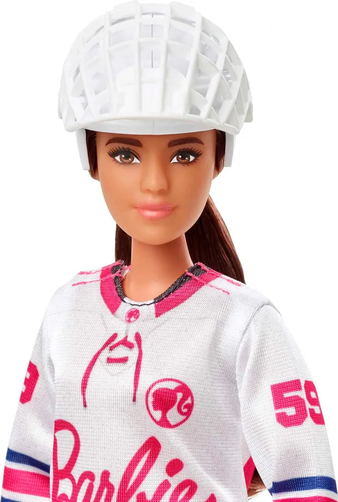 ✔️ Set beinhaltet: Barbiepuppe, Outfit, Hockeyschläger, Helm, Becher Entdecke die Welt des Wintersports mit der Barbie Eishockeyspieler-Puppe.