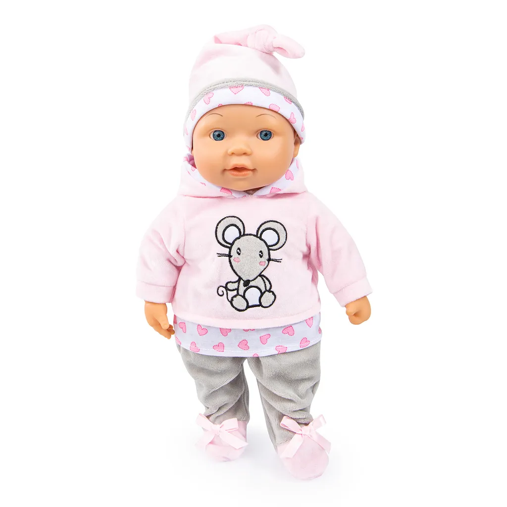 Lisa Magic Eyes ist eine 38 cm große Funktionspuppe zum Liebhaben! Winkt man vor Lisa Magic Eyes Gesicht, so bewegt die Puppe Ihre Augen nach links sowie rechts und lacht dabei niedlich (im Demomodus). Weitere süße Babylaute sowie das Bewegen der Augen werden auch durch Drücken des Bauches und der linken Hand aktiviert(Spielmodus). Lisa Magic Eyes weint zudem beim Berühren der rechten Hand. Doch dank des mitgelieferten Schnullers kann die Puppe schnell getröstet werden. Sobald Lisa Magic Eyes diesen erhält, sind süße Nuckelgeräusche zu hören. Weitere tolle Rollenspiele können auch mit der mitgelieferten Flasche realisiert werden. Durch ihren weichen Körper und dem kuscheligen Outfit mit Pullover, Hose und der passenden Mütze ist die Babypuppe auch perfekt zum Kuscheln und Knuddeln geeignet. Hinweis: Die Puppe hat einen Demomodus und kann auf der Rückseite von DEMO auf ON (Spielmodus) gestellt werden, um alle Funktionen zu erhalten.