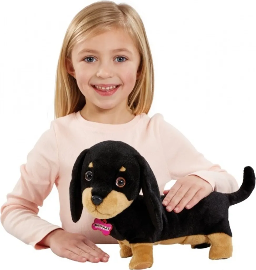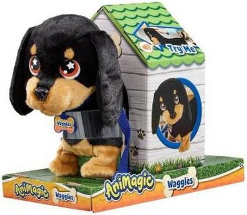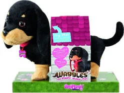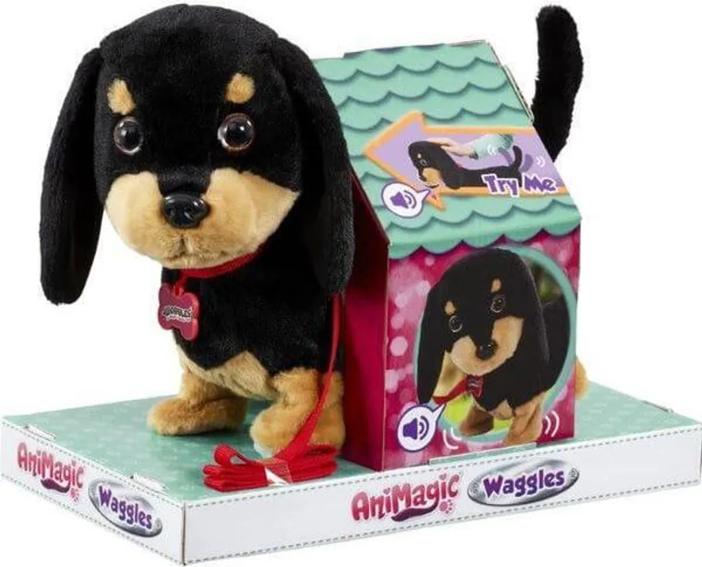 Waggles ist ein interaktiver Dackel, der nicht nur schön aussieht, sondern auch ganz besondere Funktionen besitzt, welche Kinderherzen schmelzen lassen. Sein flauschiges Fell und seine Augen sorgen für ein lebensechtes Gefühl. Waggles ist in der Lage zu laufen und mit seinem Hinterteil und seinem Schwanz zu wackeln. Um das ganze noch abzuschließen bellt er dazu noch. Mit seinen 23 cm Länge ist er der perfekte Begleiter für kleine Abenteurer.