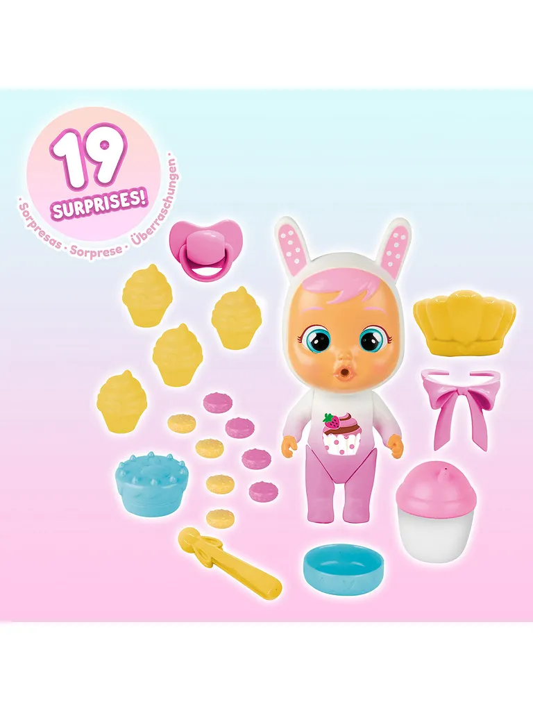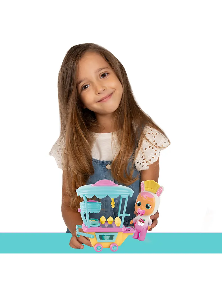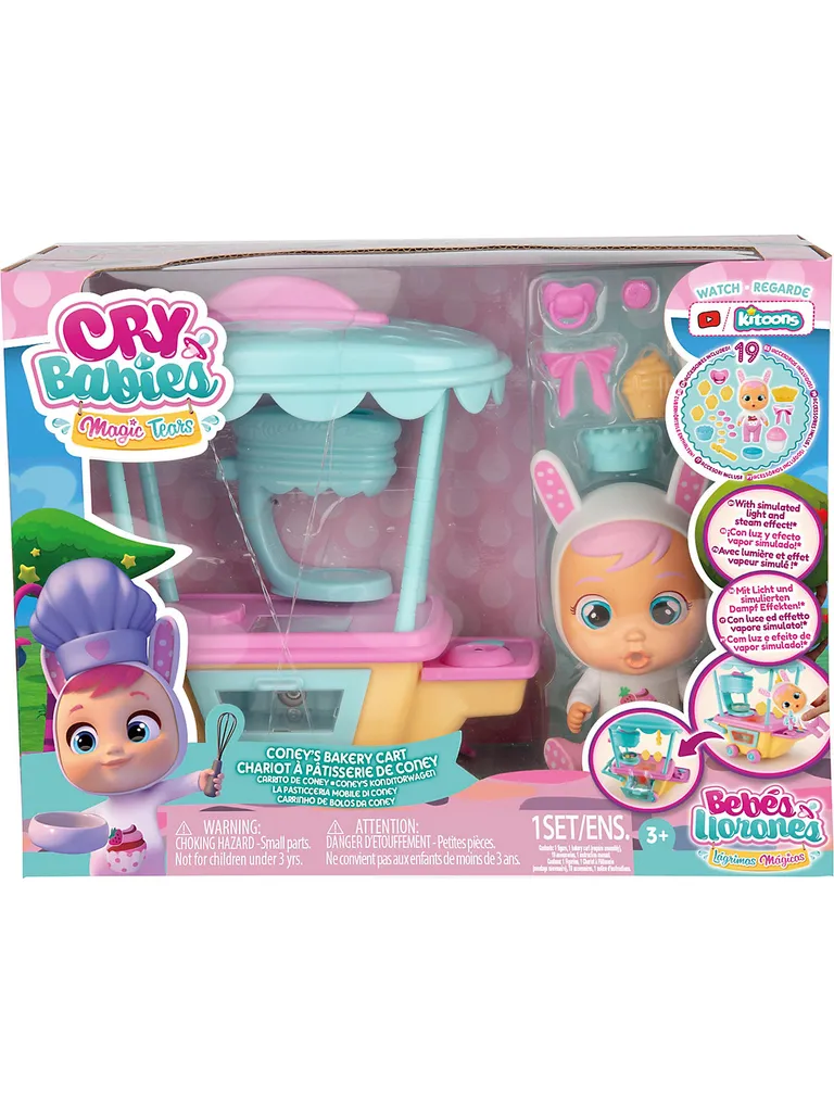 Leckerer Kuchenspaß mit den Cry Babies Magic Tears! Mit Coneys Konditorwagen schlagen die Herzen aller Back-Fans höher, denn gezaubert wird Süßes aller Art. Der Wagen begeistert im niedlichen Cry Babies Magic Tears Look und hat magische Funktionen: Wenn Coneys Kullertränen in den Auffangbehälter fallen, geht das Licht im Ofen an und Rauch steigt auf. Dann sind Kuchen oder Törtchen endlich servierbereit! Mit bis zu 19 Accessoires wie Kuchen und Cupcakes oder Zuberhörteilen wie der Macaron-Maschine können Leckereien ganz nach Coneys Rezept gebacken werden. So wird das Zuhause schnell zur magischen Cry Babies Welt und es können Szenen aus der erfolgreichen Youtube-Serie nachgespielt oder ganz fantasievoll neu erfunden werden. Übrigens lässt sich Coneys Konditorwagen auch kinderleicht mit dem Cry Babies Magic Tears Spielset Fancys Buggy verbinden. Bereit hungrige Schlemmerherzen zu erobern? Das Set enthält Coneys Konditorwagen, eine Puppe Coney und 19 Zubehörteile.Details:- Cry Babies Magic Tears „Coney’s Konditorwagen“ von IMC Toys- Puppe kann trinken und weinen- mit vielen Accessoires für abwechslungsreiche SpielmomenteMaße: ca. 16 x 11 x 19 cmMaterial: KunststoffHinweise:Es werden 2 x Batterien () benötigt. Diese sind im Lieferumfang enthalten. html