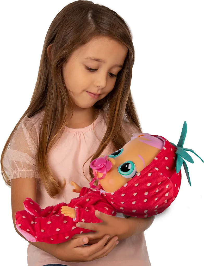 TREFFEN SIE DIE CRY BABIES ELLA MIT IHREM ERDBEERPYJAMA, DER NACH OBST RIECHT Die entzückende Cry Babies Ella lebt in Tutti Frutti Bay und trägt einen wunderschönen Pyjama mit Erdbeergeruch. Sie ist eine süße Babypuppe mit interaktiven Spielfunktionen: Sie macht echte Babygeräusche und weint echte Tränen, wenn sie mit Wasser gefüllt ist und wenn Sie ihren Dummy wegnehmen. Setzen Sie ihren Schnuller wieder ein oder sie hört nicht auf zu weinen und sie wird noch lauter weinen! Sie können sie auch beruhigen, indem Sie sie sanft schaukeln oder hinlegen. Mädchen und Jungen spielen gerne mit Cry Babies-Puppen und imitieren das Verhalten ihrer Eltern. Durch das Anziehen und Pflegen ihrer Puppen entwickeln und lernen Kinder wichtige soziale und emotionale Fähigkeiten wie Empathie. Cry Baby Puppe Ella kommt mit einem angehängten Dummy und wechselbarem Fruchtduft Onesie. Puppenmaße: ca. 30cm groß. Voll beweglicher Kopf, Arme und Beine für zusätzlichen Spielwert. 2 AAA-Batterien im Lieferumfang enthalten. Perfekt für Kinder ab 18 MonatenINTERACTIVE SCENTED DOLL: Das ist Ella, eine süße Cry Babies Puppe mit austauschbarem Erdbeerpyjama, die nach echten Früchten riechtREAL TEARS & BABY SOUNDS: Sie wird anfangen zu weinen wie ein echtes Baby, wenn Sie ihren Dummy mitnehmenTAKING CARE OF A DOLL: Beruhigen Sie Ihr Cry Baby Ella, indem Sie den Dummy in den Mund stecken oder sie sanft hinlegenFUN & IMAGINATION: Cry Baby Ella ermutigt Kinder, sich an lustigen fantasievollen Spielen zu beteiligenGREAT TOY für Mädchen und Jungen 18 Monate +; 30cm große Puppe voll beweglicher Kopf, Arme und Beine für zusätzlichen Spielwert! THE WORLD OF CRY BABIES: Erschaffe eine magische Welt mit allem Zubehör, das speziell für deine Puppe kreiert wurde