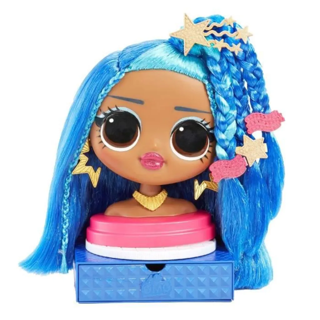 Entdecken Sie 30 Überraschungen und kreieren Sie Frisuren mit dem LOL Surprise Styling Head! OMG – (1) Erstellen Sie endlose, extravagante Looks. (2) Veredeln Sie Ihre Frisuren mit den zusätzlichen glamourösen Accessoires. – Die Basis des Stylingkopfs ist für ein einfaches Styling drehbar und verfügt über einen Aufbewahrungszug.