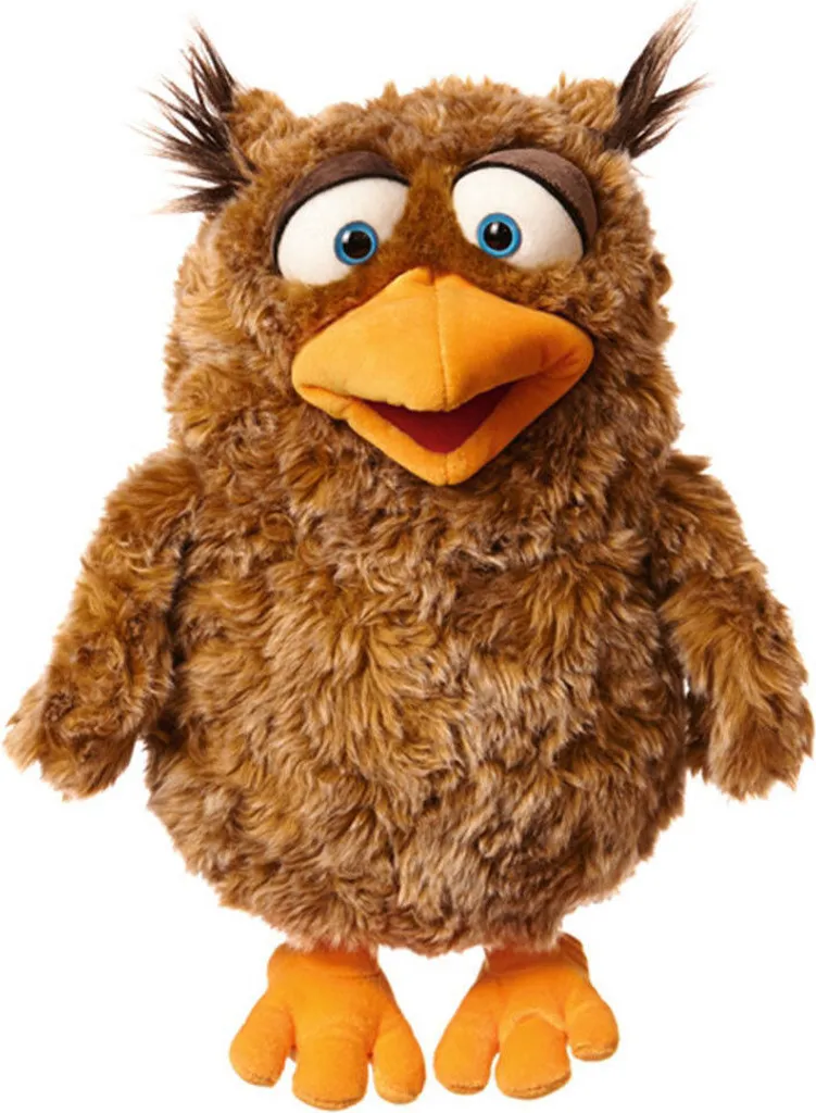 Braucht ihr dringend einen Rat? Die kluge Eulalie kennt für jedes Problem die Lösung. Das Maul ist bespielbar. Größe 40 cm.