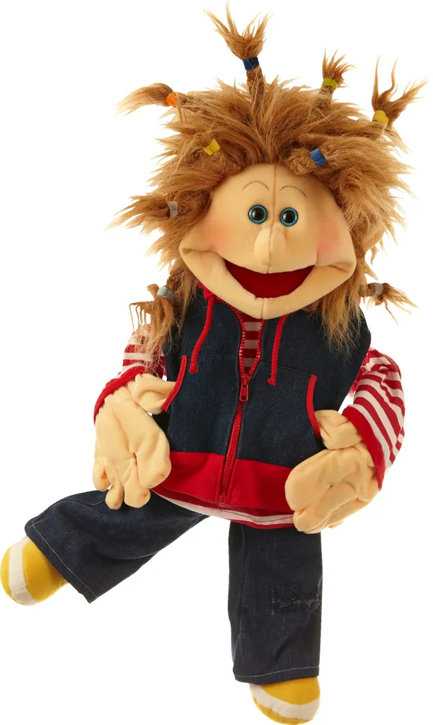 Die Living Puppets ® in der Größe von 65 cm sind besonders leicht für Kinder und Erwachsene zu bedienen und leicht zu bespielen! Der Spieler, egal ob Kind oder Erwachsener, bespielt die Puppe mit einer seiner Hände durch den Eingang am Kopf (Klappmaulprinzip). Mit seiner anderen Hand kann der Spieler zeitgleich eine Hand der Puppe bespielen. Auf diese Art ist es wirklich einfach, eine Reihe von lustigen Gesichtsausdrücken zu erstellen oder ein Gespräch zu imitieren. Natürlich kann man auch mit beiden Händen in die Arme und Hände der Puppen fassen um zu klatschen oder andere Kunststücke zu machen ..