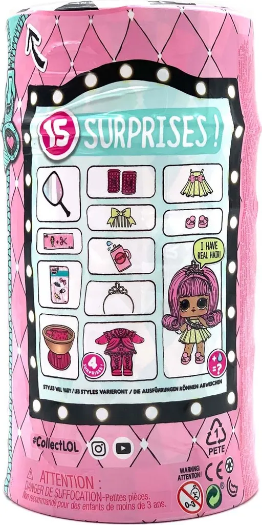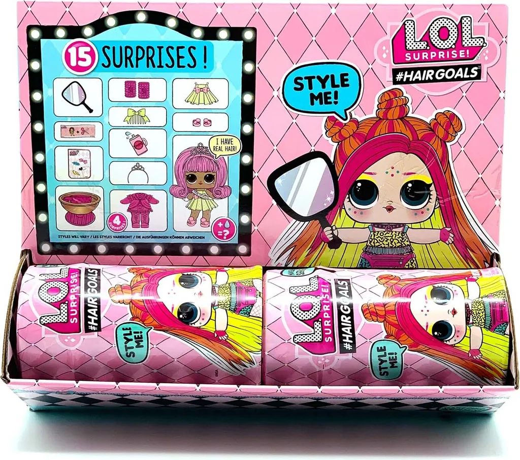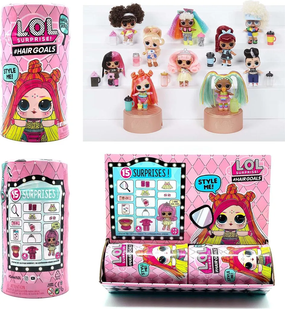 Die L.O.L. Surprise Hairgoals aus der Makeover Series haben ECHTE HAARE! Es verstecken sich neue Überraschungen in jedem Mystery Pack. Beim Baden oder füttern lässt sich die bei jeder L.O.L. Surprise Puppe eine Wasserüberraschung entdecken! Die Verpackung erinnert an eine Haarspraydose und passt perfekt zu den neuen, kämmbaren Frisuren. Sie lässt sich in ein tolles Stylingstudio oder eine coole Tragetasche verwandeln. Mixe und kombiniere die Accessoires mit deiner Lil Sister und den Pets. Inkl. 15 Accessoires und kleinem Sammelposter! Insgesamt 12 Charaktere zum Start erhältlich.