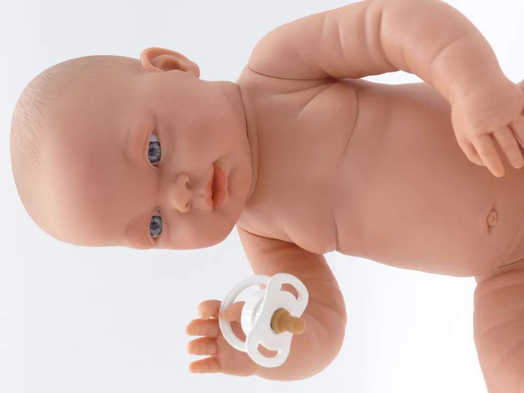 Die Mädchenpuppe ist komplett aus Softvinyl. Anatomisch korrekt und lebensecht wurde sie detailgetreu mit Speckfältchen, Bauchnabel, Geschlecht und modellierten Haaren hergestellt.