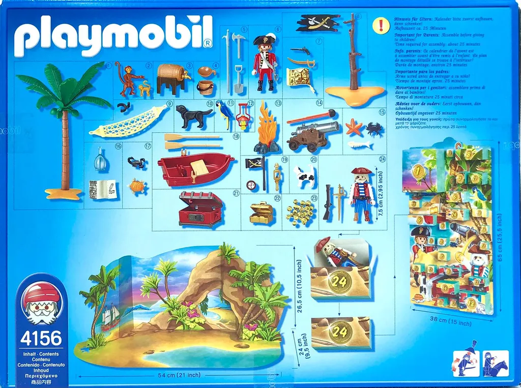 Geh an 24 Tagen mit deinen PLAYMOBIL Piraten auf Schatzsuche! Jeden Tag warten neue Überraschungen auf dich. Inklusive Szenenbild.