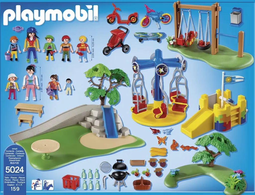 PLAYMOBIL 5024 Spielplatz Für dieses Produkt gibt es folgende Sicherheitshinweise: ACHTUNG: Nicht geeignet für Kinder unter 3 Jahren. Benutzung unter Aufsicht von Erwachsenen. Verschluckbare Kleinteile (Erstickungsgefahr) ACHTUNG: Nur für den Hausgebrauch.ACHTUNG: Benutzung unter unmittelbarer Aufsicht von Erwachsenen