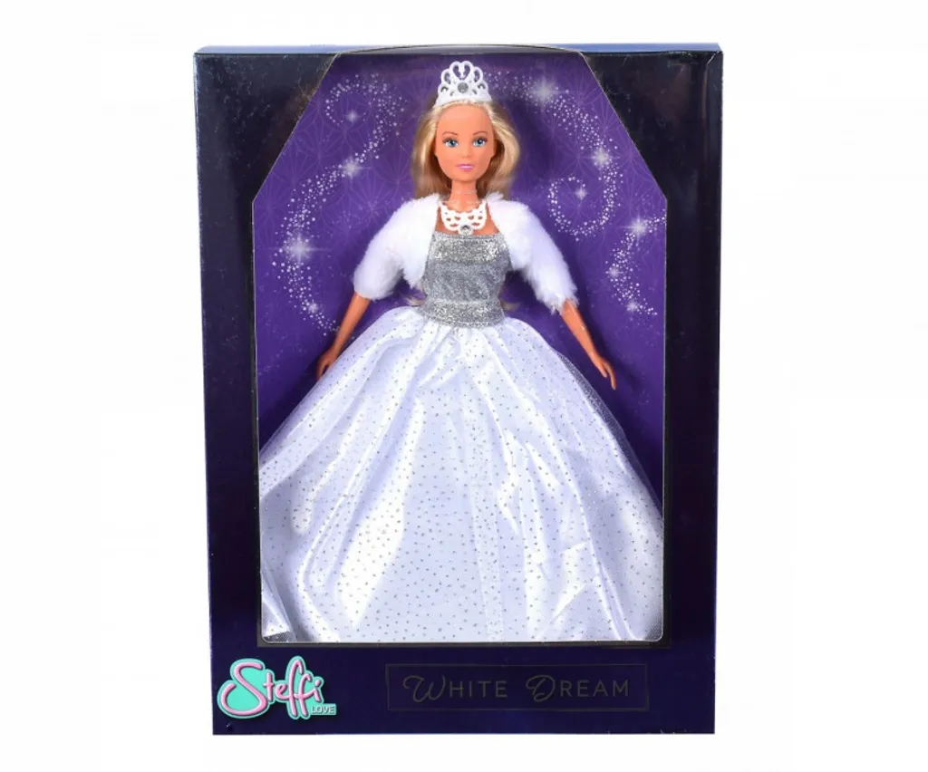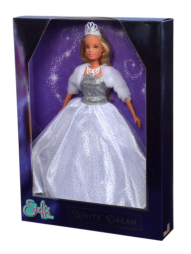 - Steffi Love Puppe in einem traumhaften weißen Glitzerkleid mit Glitzerstein