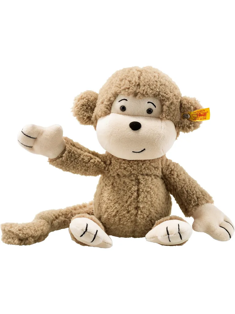 Steiff 060304 Soft Cuddly Friends Brownie AffeDer 30 cm große Soft Cuddly Friends Brownie Affe klettert überall hin. Er lächelt so schön mit dem angedeuteten Mund und die nach oben gezogenen Augenbrauen fragen, welches Abenteuer wohl als nächstes ansteht. Man kann ihn so schön greifen und ertasten. Gesicht, Hände und Füße sind aus kurzem Plüsch gearbeitet, das Fell ist in längerem, kuschelweichen Plüsch gearbeitet. Die unterschiedlichen Oberflächen laden ein zum Fühlen und Spüren. Dies weckt die Feinmotorik.Waschbarkeit30° C Schonwäsche, Nicht Bleichen, Nicht im Wäschetrockner trocknen, Nicht Bügeln, Nicht Trockenreinigen