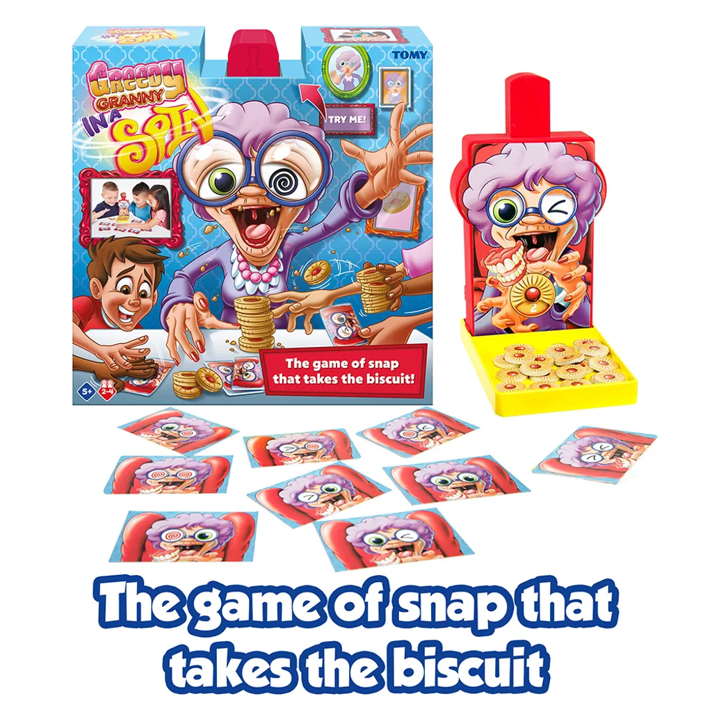 Erinnerst du dich an den Spaß, den du mit Greedy Granny hattest, als du versuchtest, ihre Kekse zu greifen, ohne sie aufzuwecken? Nun, Oma ist zurück und sie zeigt keine Anzeichen von Loslassen. In Greedy Granny In a Spin wirst du ihre wulstigen, gierigen Augen mit einem Schubsen des Hungerkolbens drehen. Runde um Runde gehen sie? Wer weiß, wie sie aussehen werden, wenn sie aufhören? Wenn sie es tun, ist das Rennen eröffnet, um die Karte mit den Augen auf Omas Gesicht zu finden. Zuerst, um das Paar zu erkennen, das übereinstimmt, sammelt die Anzahl der Cookies, die auf dem Zifferblatt angezeigt werden. Spielen Sie, bis alle Karten fertig sind oder bis die Kekse alle weg sind! Der Spieler mit der größten Sammlung von Cookies gewinnt das Spiel! Es ist schnell, es ist hektisch und voller Spaß! Wenn es an der Zeit ist, Granny ins Bett zu bringen, lässt sich das Set ordentlich zusammenklappen und verfügt über ein eigenes Ablagefach für alle Ihre Karten und Spielzeugkekse. Geeignet für 2-4 Spieler ab 5 Jahren. Keine Batterien erforderlich. Anzahl der Spieler 2 – 4Geeignet Ab 5 JahrenKeine Batterien erforderlich. In Greedy Granny In a Spin werden Sie ihre perle, gierigen Augen mit einem Schubsen des Hungerkolbens drehenAktions- und AblenkungskartenEntwickeln Beobachtung und ReflexePraktisch für Reisen und Spielen unterwegs