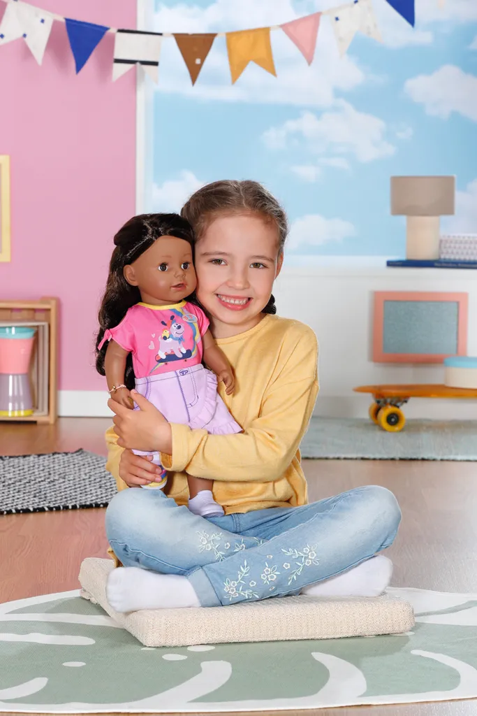 BABY born Sister ist ein bisschen älter als BABY born, aber genauso groß, deshalb können die beiden prima Klamotten tauschen. Sie hat wunderbar langes Haar, das man toll kämmen und frisieren kann. BABY born Sister mit lebensechten Funktionen, die alle ohne Batterien funktionieren, ist durch ihren weichen und mobileren Körper nun noch einfacher zu bespielen und bietet ein realistisches Eltern Kind Rollenspiel.